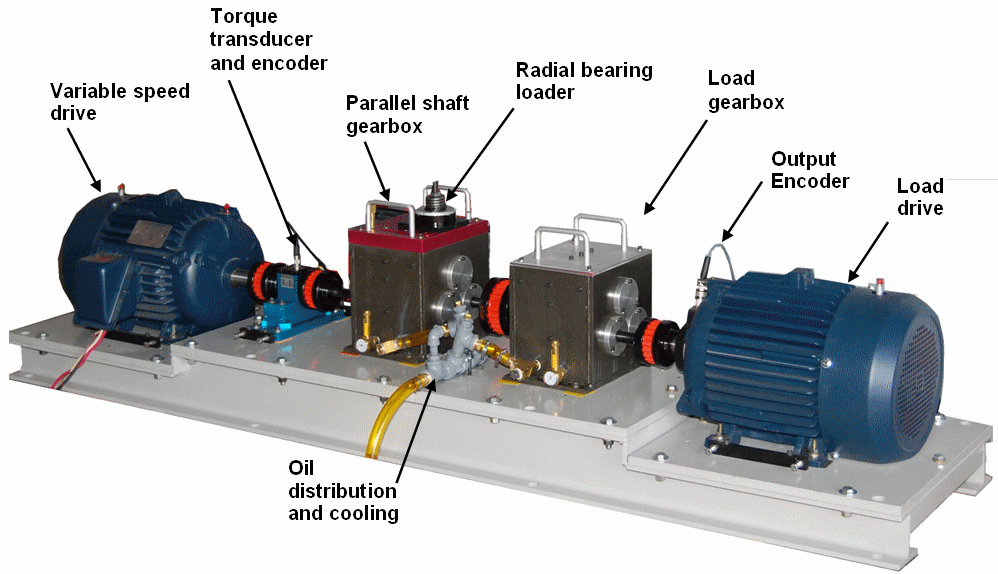 - 負載箱:一個線的平行軸齒輪箱具有更大的負載能力比測試變速箱,可配置為兩個階段減少/增加器