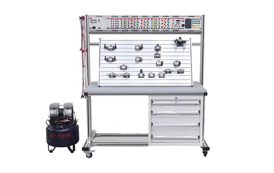 TYK-DYQ03型 單面工業(yè)液壓氣動實訓(xùn)臺依據(jù)國家高等院校、職業(yè)技術(shù)院校的《液氣壓傳動》、《氣動控制技術(shù)》教學(xué)大綱、實驗教學(xué)大綱, 針對當(dāng)前的實驗教學(xué)現(xiàn)況而專業(yè)設(shè)計的氣動教學(xué)實驗臺。單面工業(yè)液壓氣動實訓(xùn)臺覆蓋了氣動技術(shù)、PLC自動控制技術(shù)、傳感器應(yīng)用技術(shù)等多項技術(shù),是氣動技術(shù)和控制技術(shù)的完美結(jié)合。