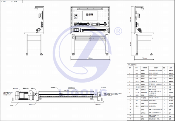 臺面尺寸 1500*800*780(寬*深*高),上部設(shè)置試驗裝置安裝屏高 1000 ,總重量 約 110KG。