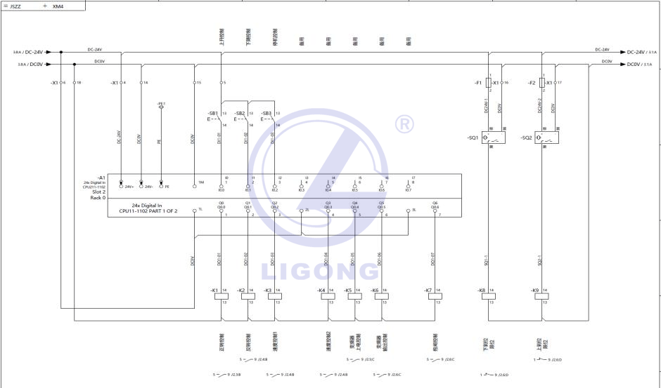 電機變頻驅(qū)動控制系統(tǒng)由一套由電機調(diào)速驅(qū)動控制系統(tǒng),模擬升船機承船廂的升 降控制運行。該設(shè)備由可編程控制器、變頻器、斷路器、中間繼電器、按鈕、減速電
