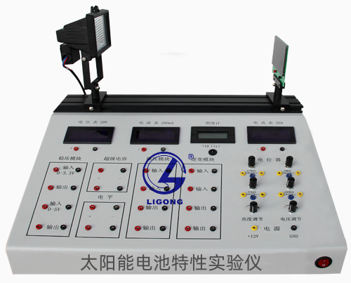 一、產品概述 ? ? 太陽能的利用指太陽能的直接轉化,利用半導體器件的光伏效應原理,把太陽輻射能轉化為電能成為光伏技術。利用光伏技術設計的太陽能發(fā)電系統(tǒng)主要有太陽能電池片(組件),控制器和逆變器三大部分組成,他們主要有電子元器件構成,不涉及機械結構,所以光伏發(fā)電設備極為精煉。 二、技術參數(shù) 1. 直流電壓表:量程0-20V; 2. 直流電流表:量程0-200MA; 3. 照度計:自動更換量程;測量范圍 0.1~1.999×103lx; 4. 單晶硅太陽能電池板:6V/120MA 5. 多晶硅太陽能電池板:6V/120MA 6. 非晶硅太陽能電池板:6V/70MA 7、外形尺寸:350mm(長)×300mm(寬)×190mm(高);重量:3kg。 三、實驗內容 1. 了解并掌握太陽能電池的原理及結構; 2. 測量太陽能電池暗特性; 3. 測量太陽能電池光照特性:短路電流與光照強度關系; 以上是對單晶硅、多晶硅及非晶硅太陽能電池的測量...
