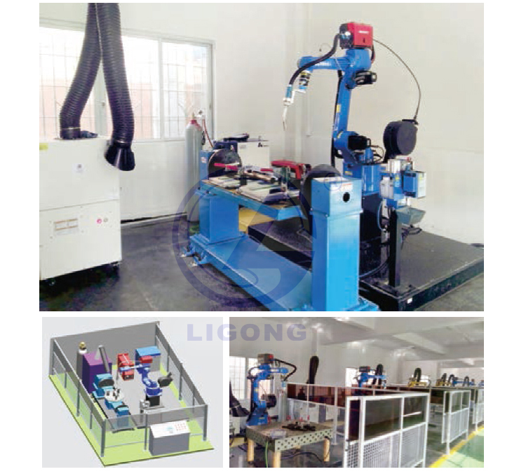 ? ? LGH-HJ12型 工業(yè)機(jī)器人焊接實(shí)訓(xùn)平臺(tái)由LG-ZN612型工業(yè)機(jī)器人和焊機(jī),送絲機(jī),焊槍及清槍裝置,保護(hù)氣體設(shè)備,工作臺(tái)、工裝夾具、變位機(jī),安全系統(tǒng)(圍欄、光柵、自動(dòng)門、門鎖等),排煙系統(tǒng)等組成。工業(yè)機(jī)器人焊接工作站可以完成不同工件的直縫焊,船型焊,弧形焊等工作:利用計(jì)算機(jī)控制下的連續(xù)軌跡或者點(diǎn)位控制、焊接跟蹤技術(shù)、焊接檢測(cè)技術(shù)等,實(shí)現(xiàn)生產(chǎn)中各種焊接需求。