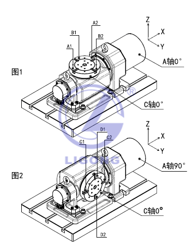 該機(jī)床具有X﹑Y﹑Z三個(gè)直線運(yùn)動(dòng)的數(shù)控坐標(biāo)軸和A、C二個(gè)旋轉(zhuǎn)運(yùn)動(dòng)的數(shù)控坐標(biāo)軸, 可實(shí)現(xiàn)五軸聯(lián)動(dòng)。各坐標(biāo)軸可自動(dòng)定位,工件在一次裝夾后,可自動(dòng)完成銑﹑鉆﹑鏜﹑鉸等多種工序的加工。